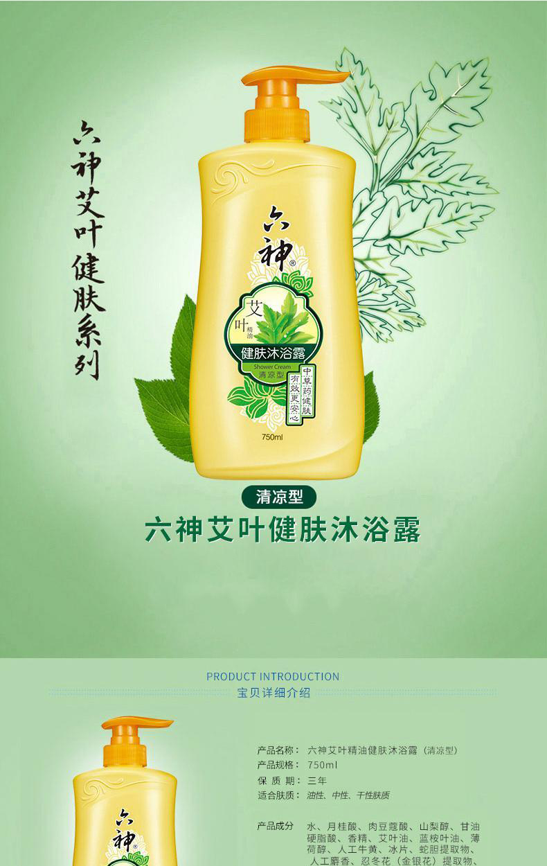 六神艾叶健肤沐浴露(清凉型) 200ml