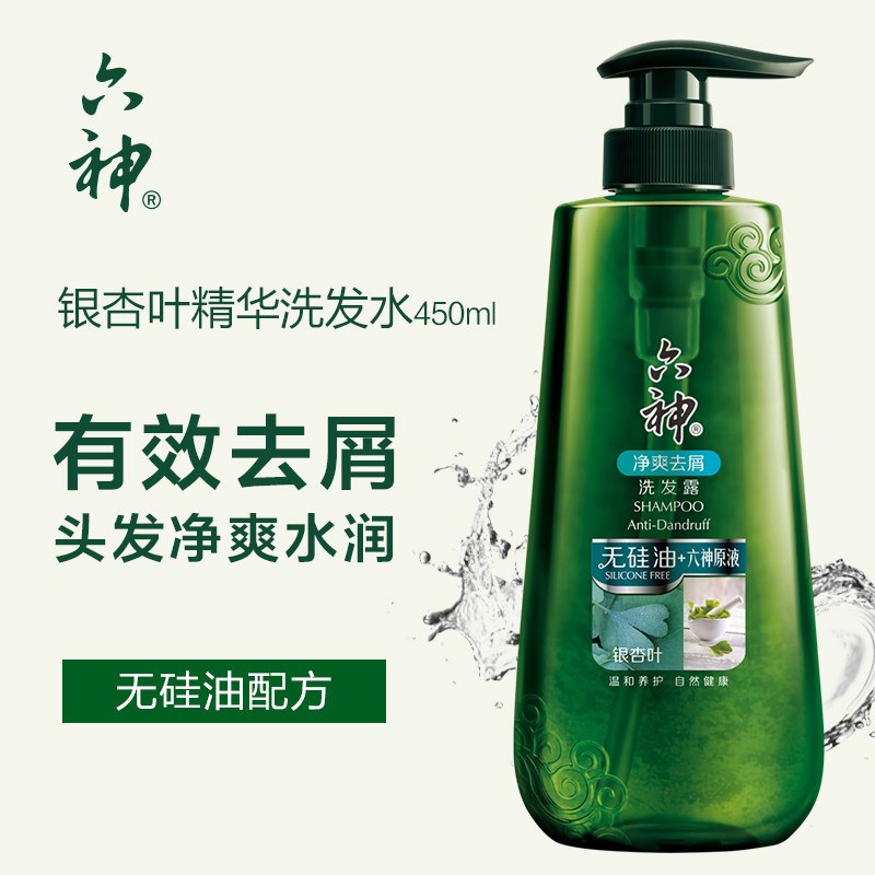 六神无硅油洗发露银杏叶净爽去屑洗发水 450ml
