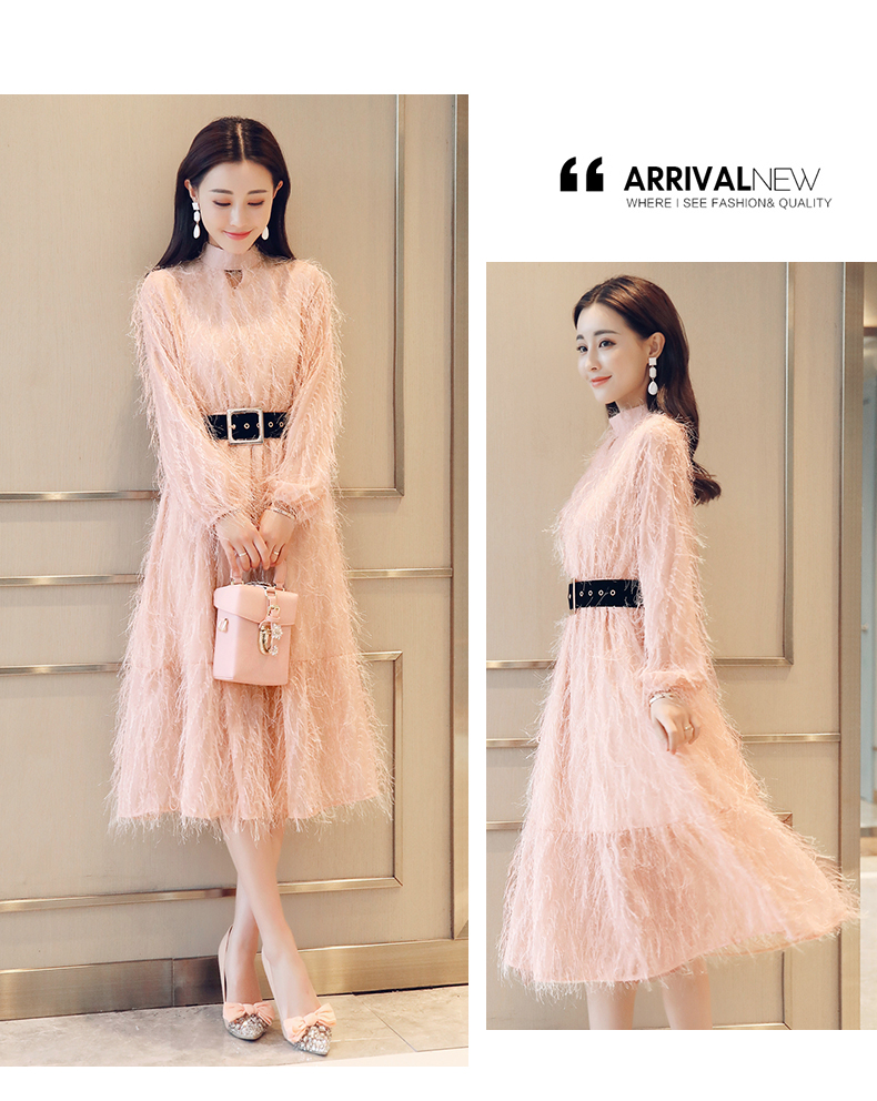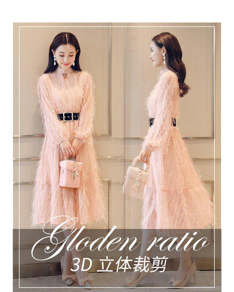 依蓝姗立领长连衣裙裙 x1