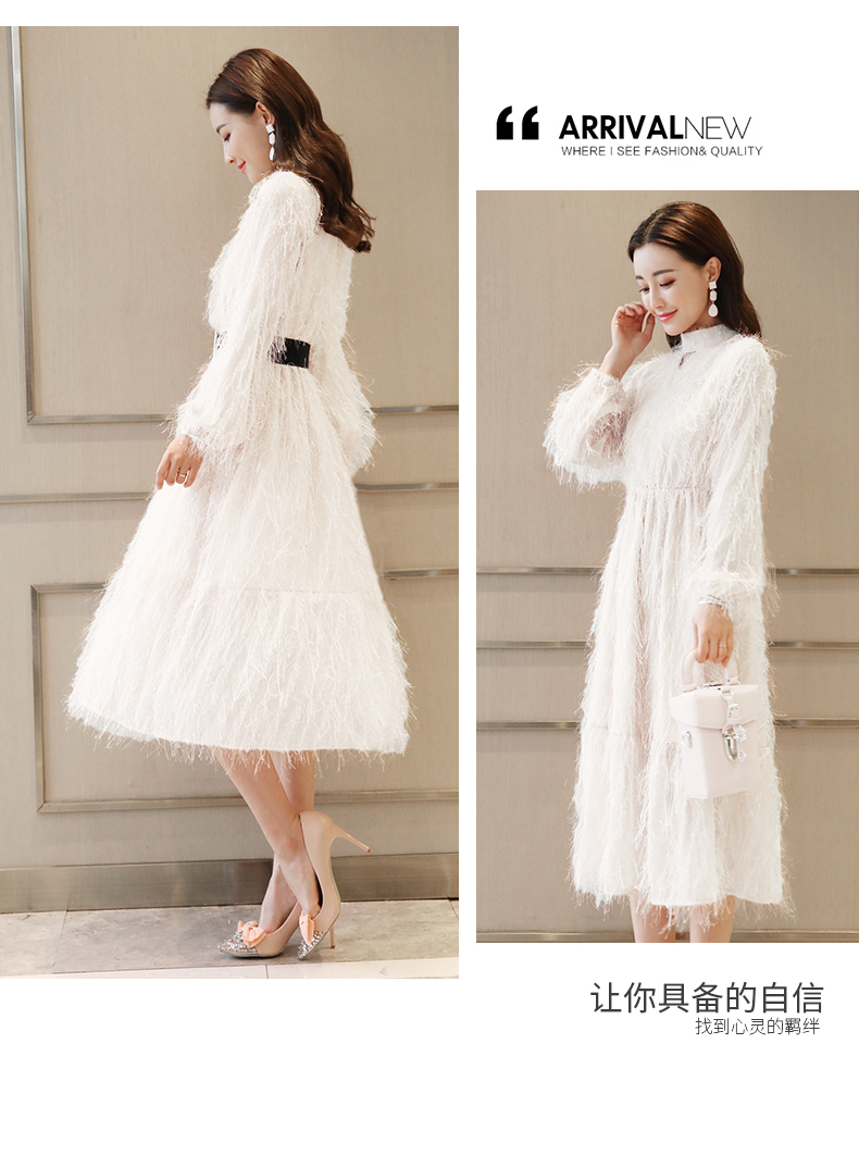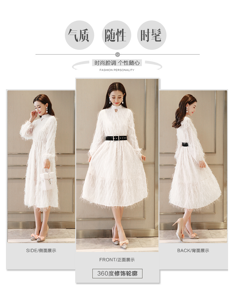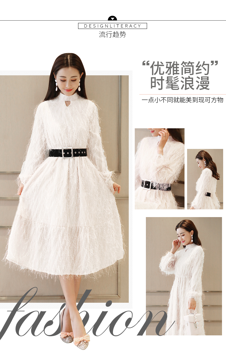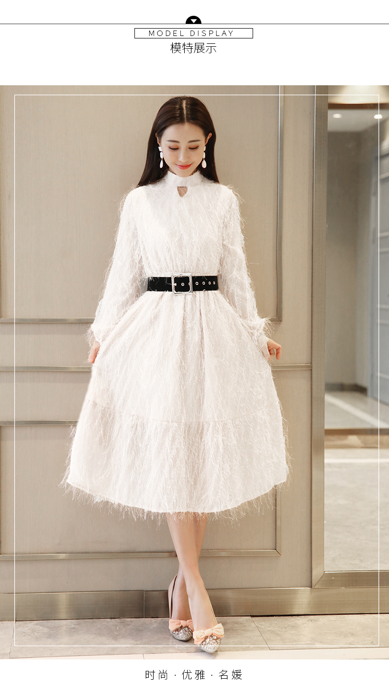 依蓝姗立领长连衣裙裙