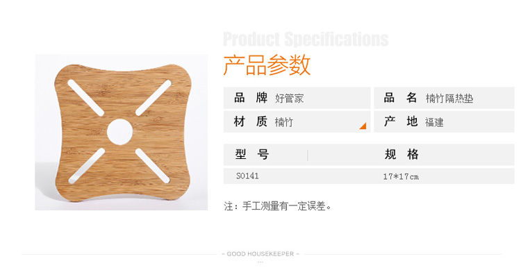 好管家 楠竹餐桌垫 隔热垫17*17cm x1