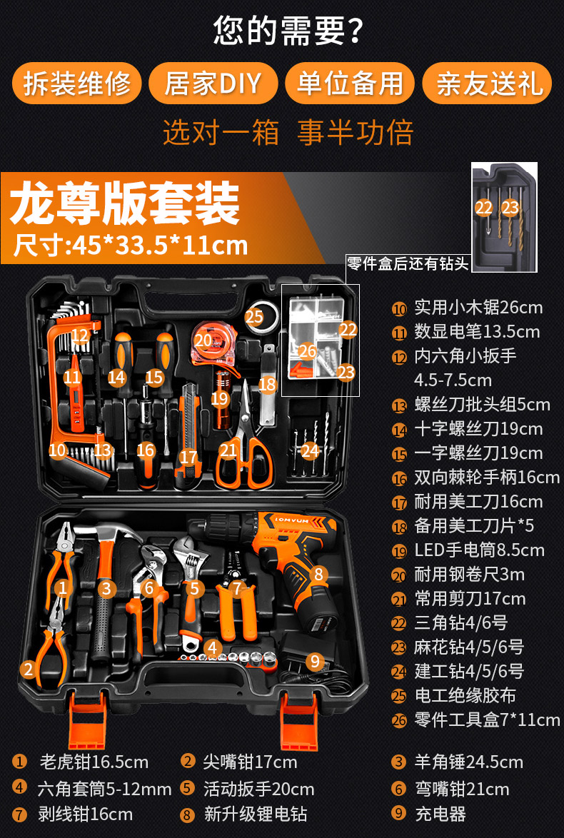 龙韵升级12V锂电钻工具套装