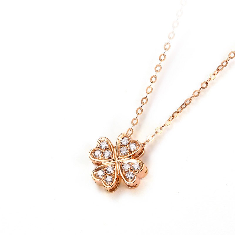 18k玫瑰金四叶草项链女au750黄金锁骨链
