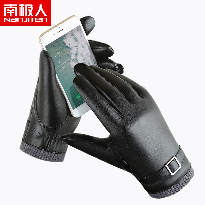 南极人手套男冬季保暖加厚防风触屏皮手套 NJRMG153