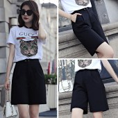 艾莲奴直筒黑色高腰五分短裤