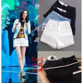 艾莲奴高腰牛仔短裤排扣