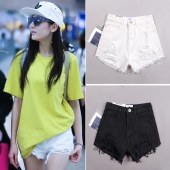 艾莲奴毛边破洞白色牛仔短裤