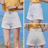 艾莲奴高腰毛边白色牛仔短裤